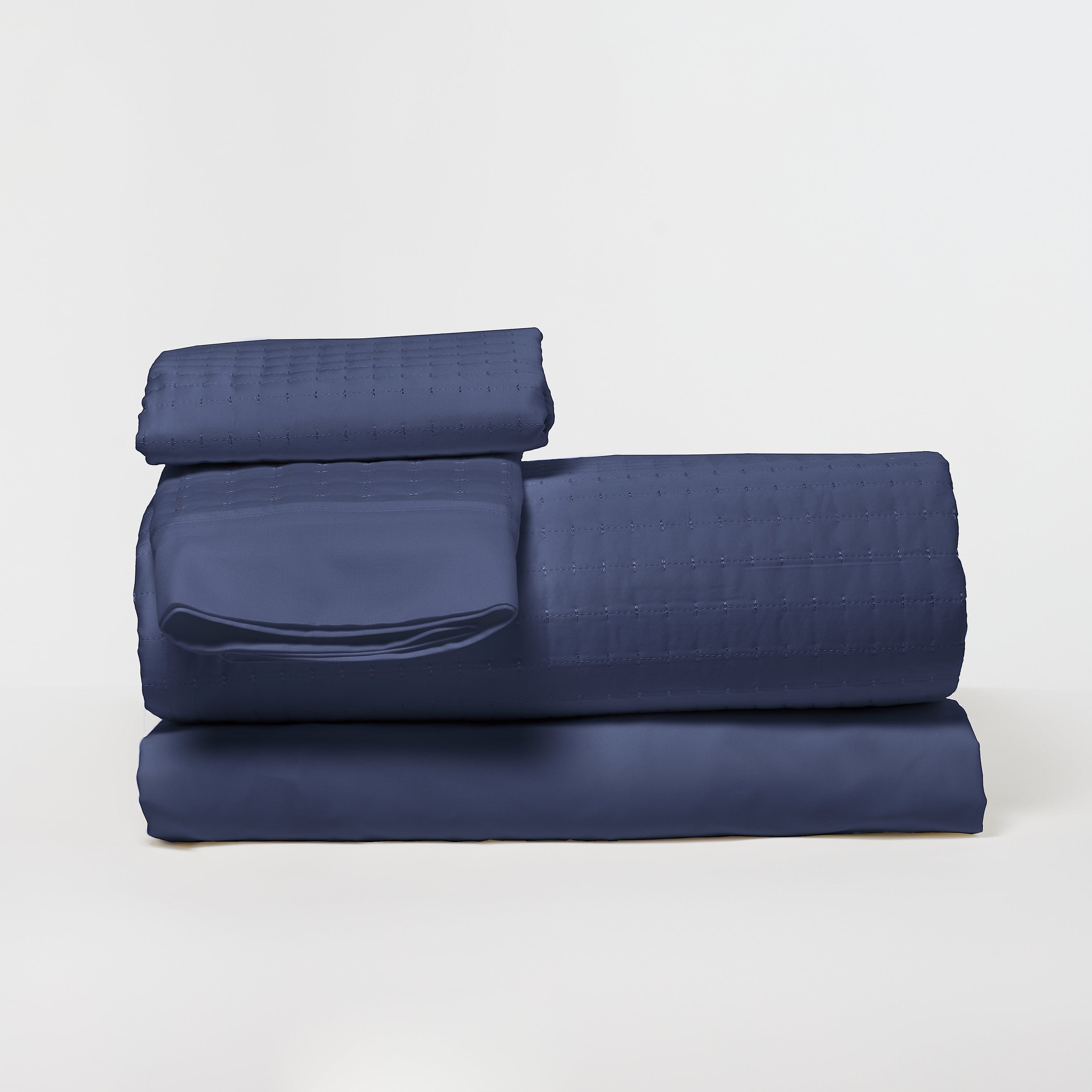 When a blanket is too much and a sheet isn’t enough. Lightweight, breathable 2-in-1quilted top sheet and shams for everyday elegance.